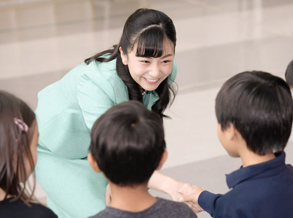 子どもたちに話し掛ける佳子さま(C)共同通信社
