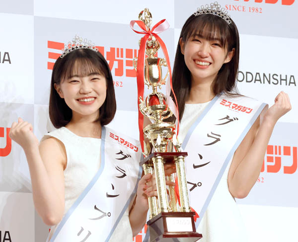 ミスマガジン2022グランプリを受賞した咲田ゆな(左)と瑚々(C)日刊ゲンダイ