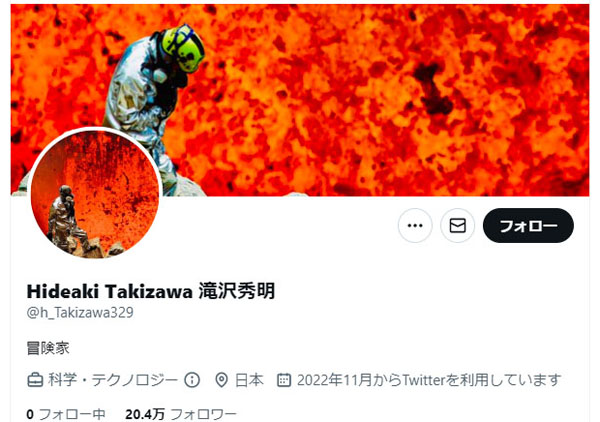 すでにフォロワー20万人超え!(滝沢秀明氏のものと思われるツイッターアカウント)