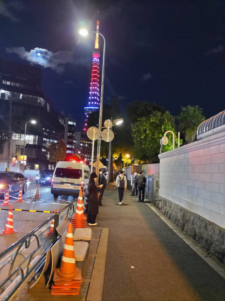 大使館前は厳戒態勢(C)日刊ゲンダイ