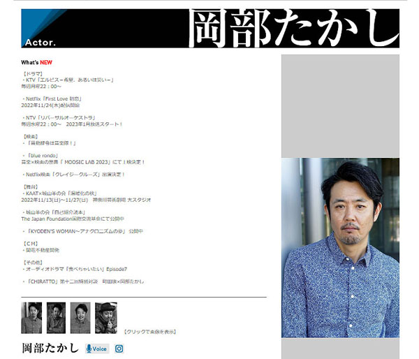 岡部たかし(所属事務所クリオネ公式サイトから)