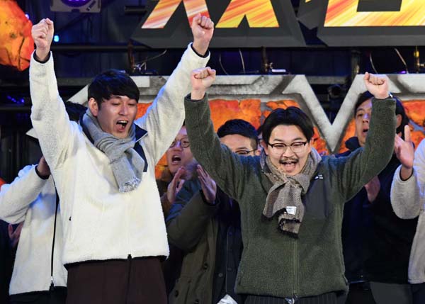 敗者復活戦を勝って喜ぶオズワルド(C)M-1グランプリ事務局