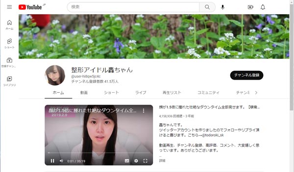 「整形アイドル轟ちゃん」ユーチューブチャンネル