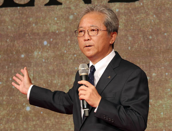東映70周年記念映画「THE LEGEND&BUTTERFLY」企画発表会見での手塚治社長/(C)日刊ゲンダイ