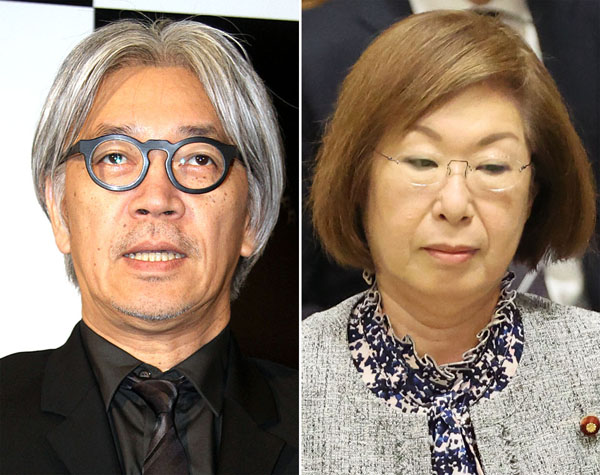 なぜ坂本龍一さん(左)の“遺言”をスルーするのか?(永岡桂子文科相=右)/(C)日刊ゲンダイ