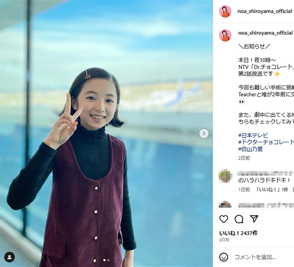 (白山乃愛の公式インスタグラムから)