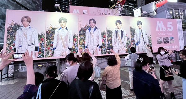 King&Princeのラストアルバムリリース広告の前で写真を撮るファン(C)日刊ゲンダイ