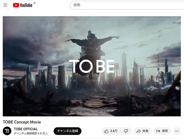 TOBE公式ユーチューブの「TOBE Concept Movie」動画