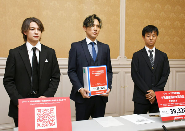 児童虐待防止法の改正を求める署名を与野党に提出した3人(左からカウアン・オカモトさん、橋田康さん、二本樹顕理さん)/(C)日刊ゲンダイ