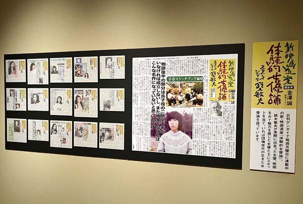 入り口には本紙連載「体験的女優論」のパネルも展示されている(C)日刊ゲンダイ