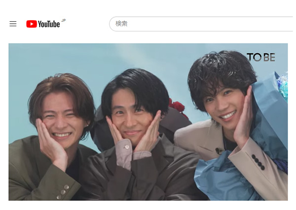 左から、平野紫耀、三宅健、神宮寺勇太(TOBE OFFICAL ユーチューブから)