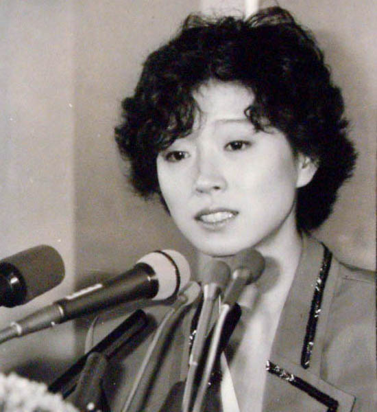 金屏風の前で会見を行った中森明菜(89年)/(C)日刊ゲンダイ