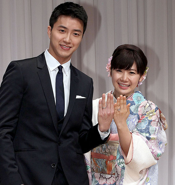 昔はラブラブだったが…(2016年、結婚会見での福原愛と江宏傑氏)/(C)日刊ゲンダイ