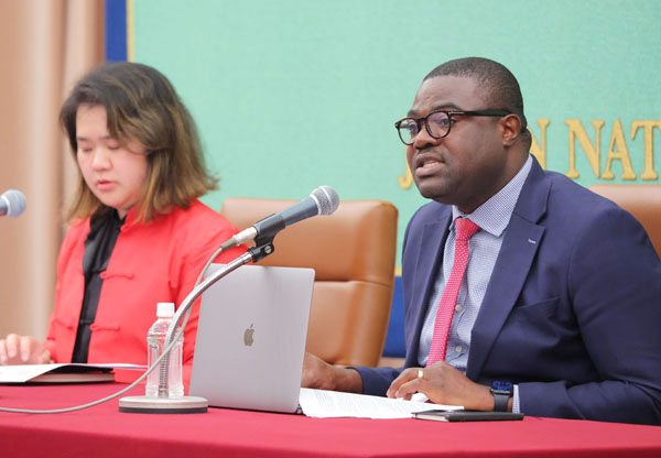 国連人権理事会「ビジネスと人権」作業部会のダミロラ・オラウィ議長(右)/(C)日刊ゲンダイ