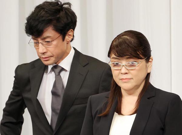 9月7日の会見はどこか不遜で…(ジャニーズ事務所の東山紀之新社長と藤島ジュリー景子前社長)/(C)日刊ゲンダイ