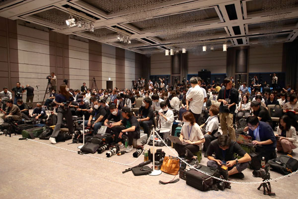 会見に集まった約300人の報道陣(C)日刊ゲンダイ