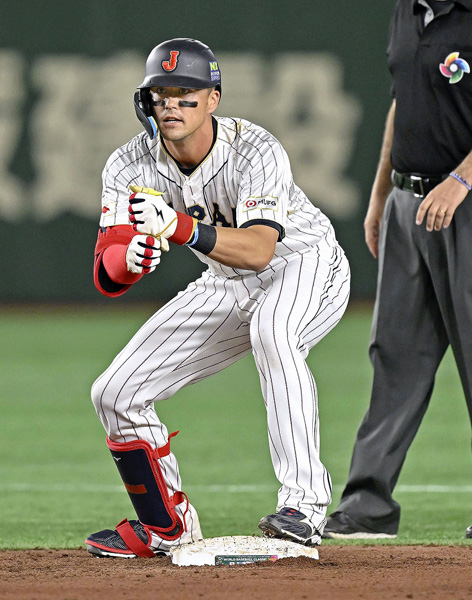 「ペッパーミル・パフォーマンス」をするラーズ・ヌートバー選手(C)共同通信社