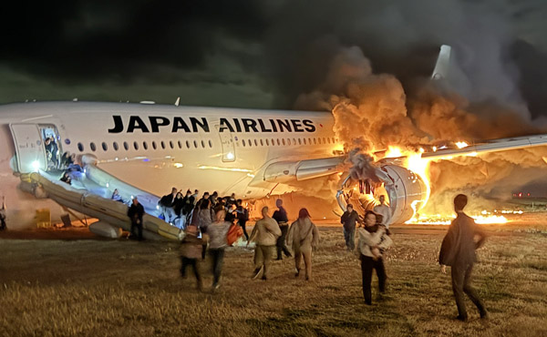 炎上する日航機516便(C)日刊ゲンダイ/中西直樹