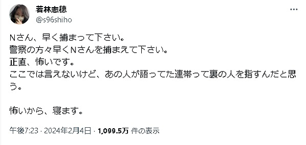 若林志穂さん「Nさん、早く捕まってください」と悲痛な叫び…直前に配信された対談動画に反応