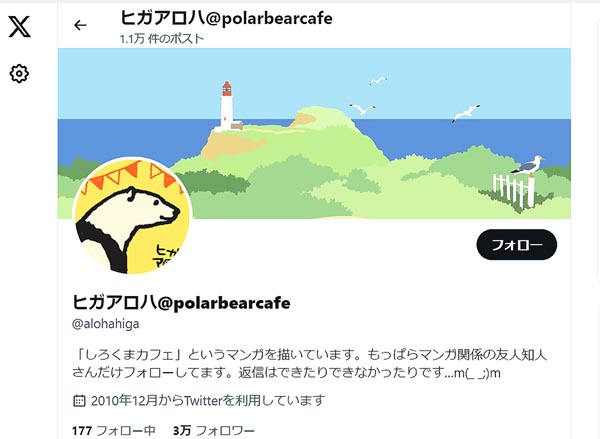 (「しろくまカフェ」原作者ヒガアロハ氏のXから)