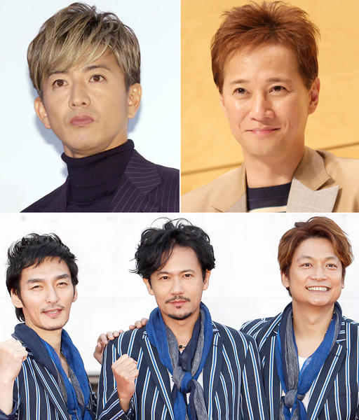 再結成あるか?(左上から時計回りに、木村拓哉、中居正広、新しい地図の香取慎吾、稲垣吾郎、草彅剛)/(C)日刊ゲンダイ