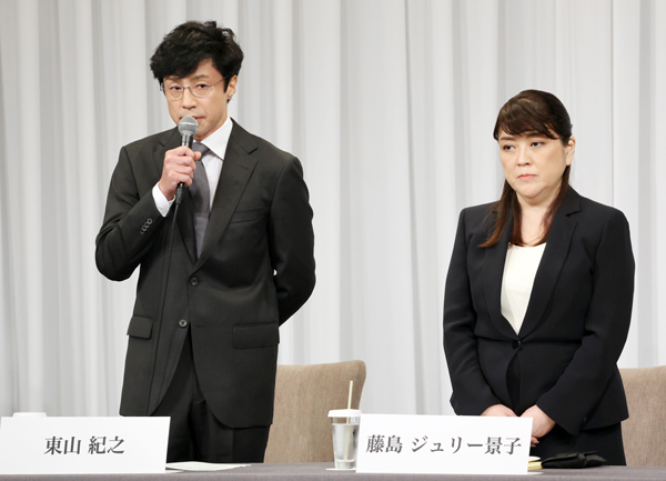 故・ジャニー喜多川氏の性加害問題についてジャニーズ事務所が行った会見(東山紀之氏=左と藤島ジュリー景子氏)/(C)日刊ゲンダイ