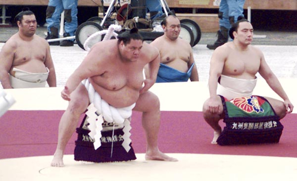 長野五輪開会式会場で土俵入りを披露する横綱曙(C)共同通信社