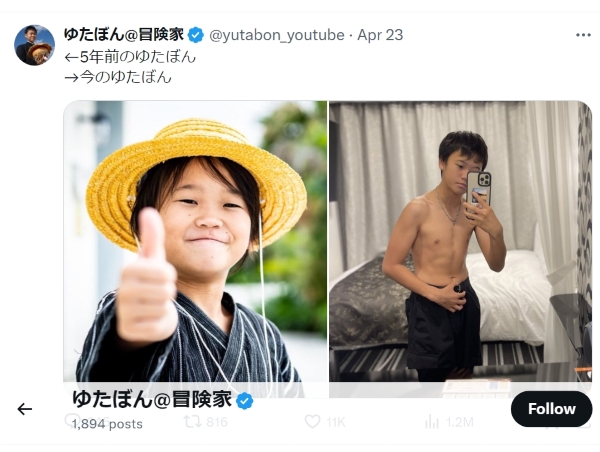 「少年革命家」として活動していたころから変化が…(ゆたぼん公式Xから)