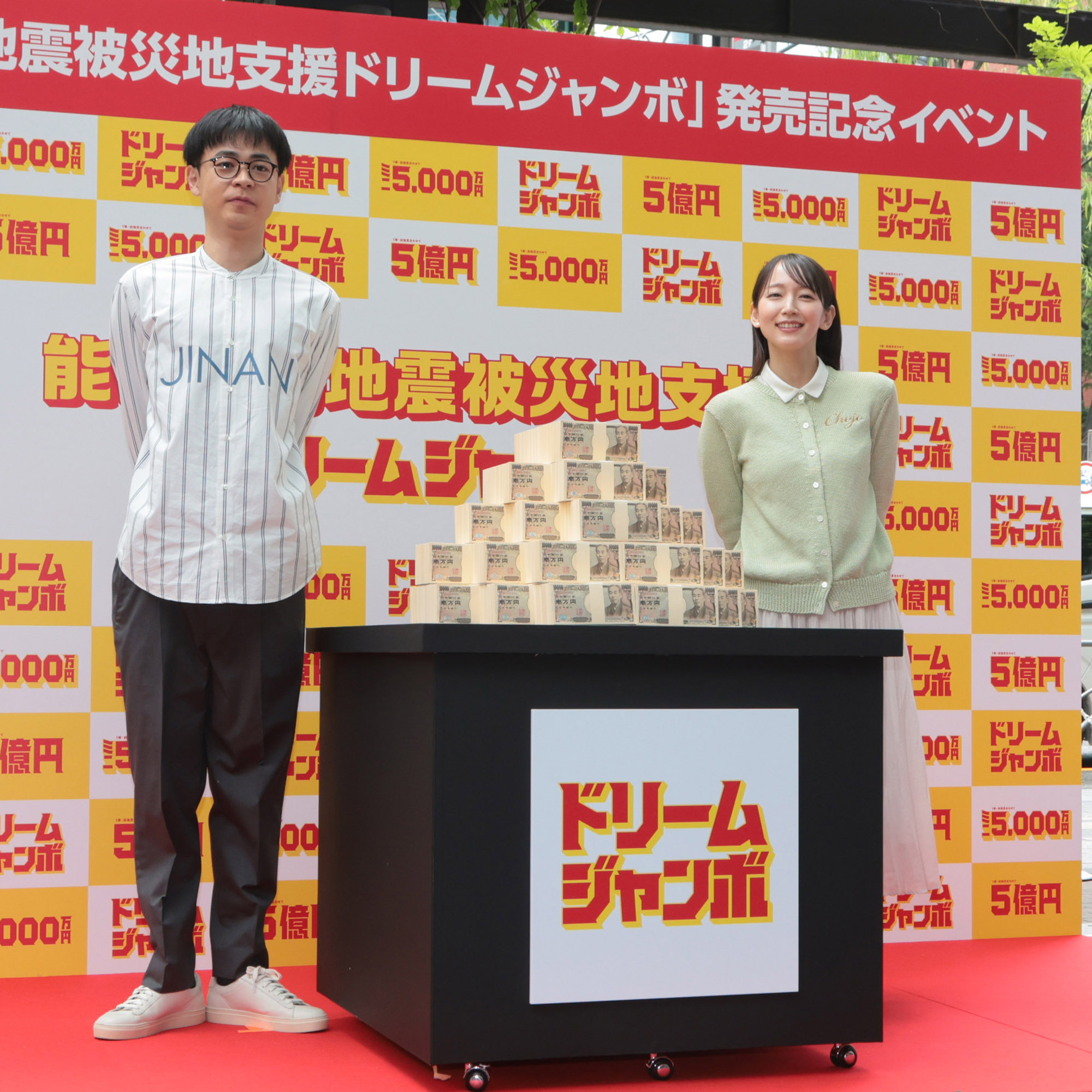 「能登半島地震被災地ドリームジャンボ」発売記念イベントで成田凌(左)と(C)日刊ゲンダイ