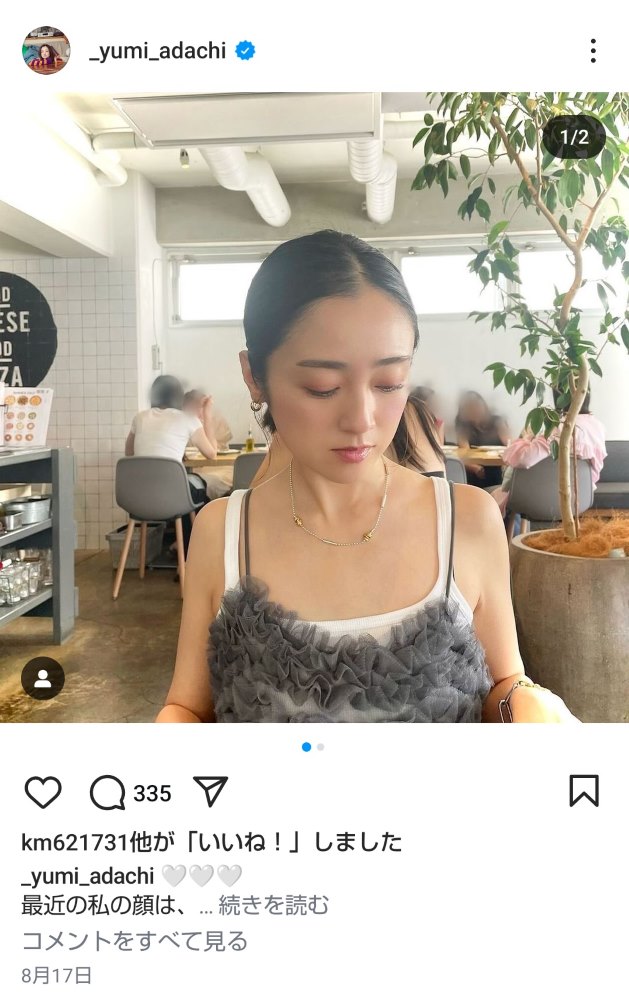 池田美優に似ているとの声が上がった安達祐実の近影(本人のインスタグラムから)