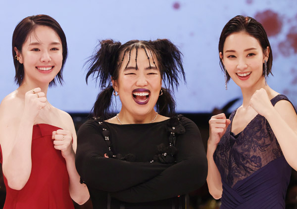 主演のゆりやんレトリィバァ(中央)と唐田えりか(左)、剛力彩芽(右)/(C)日刊ゲンダイ