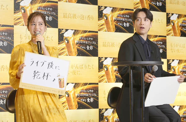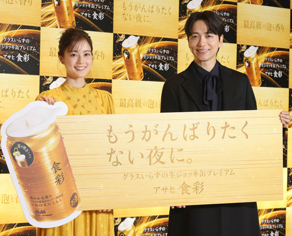 「アサヒ食彩新CM発表会」 生田絵梨花と山崎育三郎(C)日刊ゲンダイ