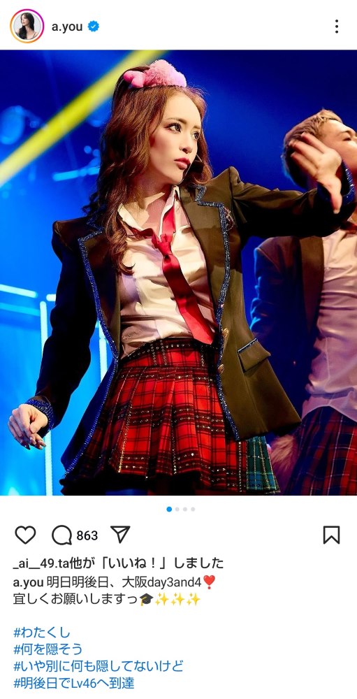 制服姿の浜崎あゆみ(本人のインスタグラムから)