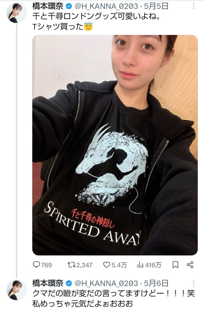 橋本環奈(本人のツイッターから)