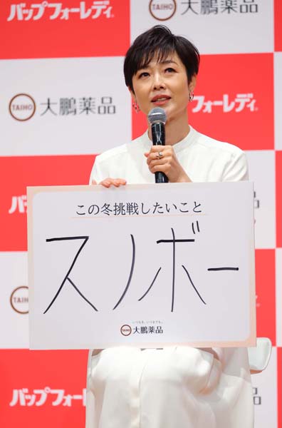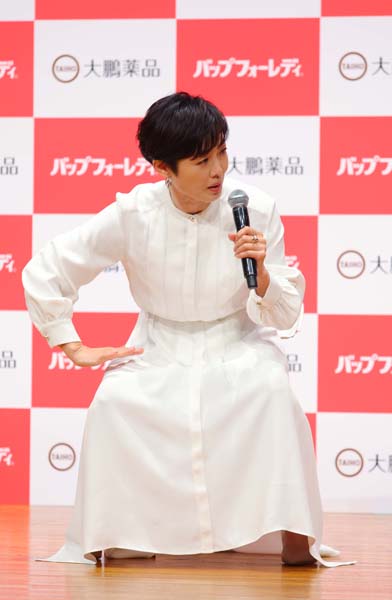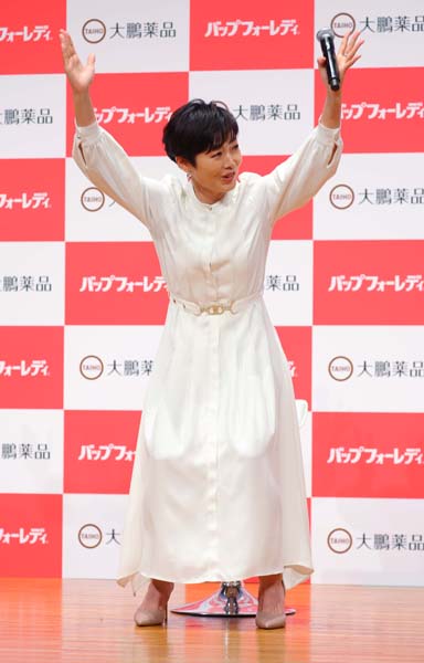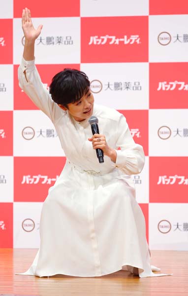 「バップフォーレディ」の新CM発表会に登壇したフリーアナウンサーの有働由美子(C)日刊ゲンダイ