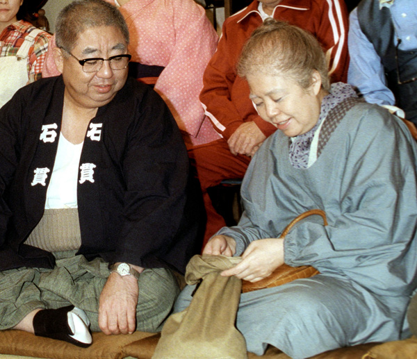 「寺内貫太郎一家'98秋」ドラマ会見での樹木希林(右)と小林亜星(C)共同通信社