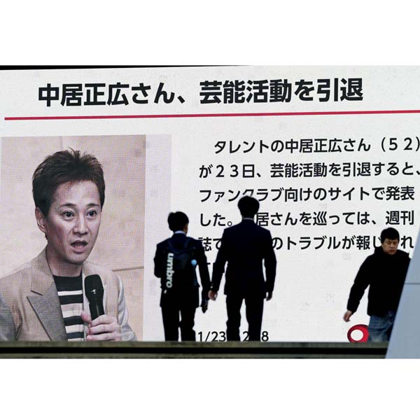 中居正広さんの芸能界引退のニュースを流す街頭モニター(C)共同通信社
