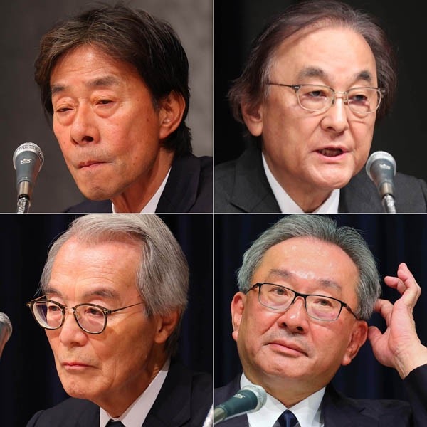(左上から時計回りに)会見に出席した港浩一氏、金光修氏、遠藤龍之介氏、嘉納修治氏(C)日刊ゲンダイ