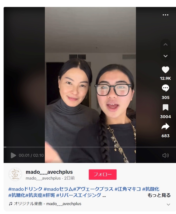 江角マキコさんと長女が登場化粧品ブランドのTikTokより