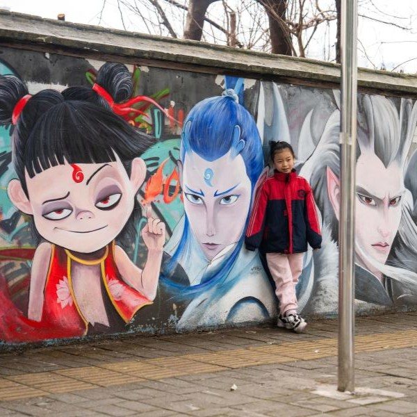 「ナタ2」の壁画が街頭に(C)新華社/共同通信イメージズ