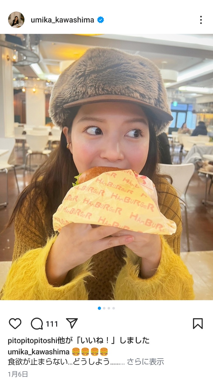 1月6日に投稿された川島海荷(本人のインスタグラムから)