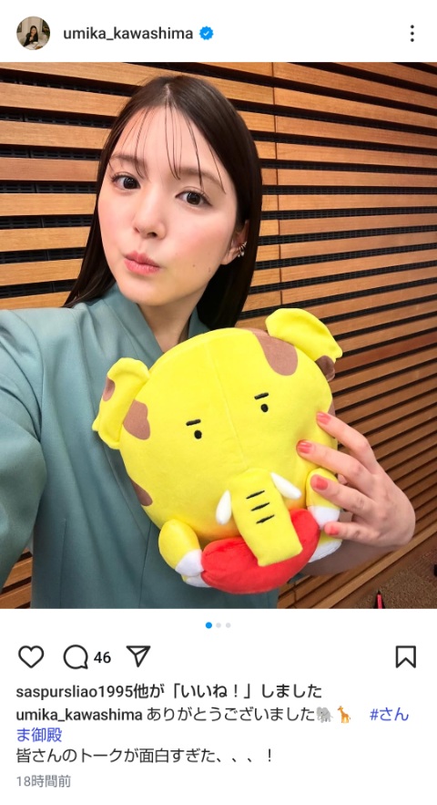 「さんま御殿」出演を報告する川島海荷(本人のインスタグラムから)