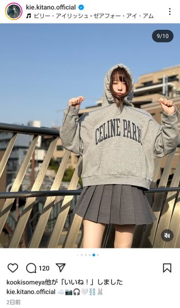 絶賛を集めたパーカー姿の北乃きい(本人のインスタグラムから)