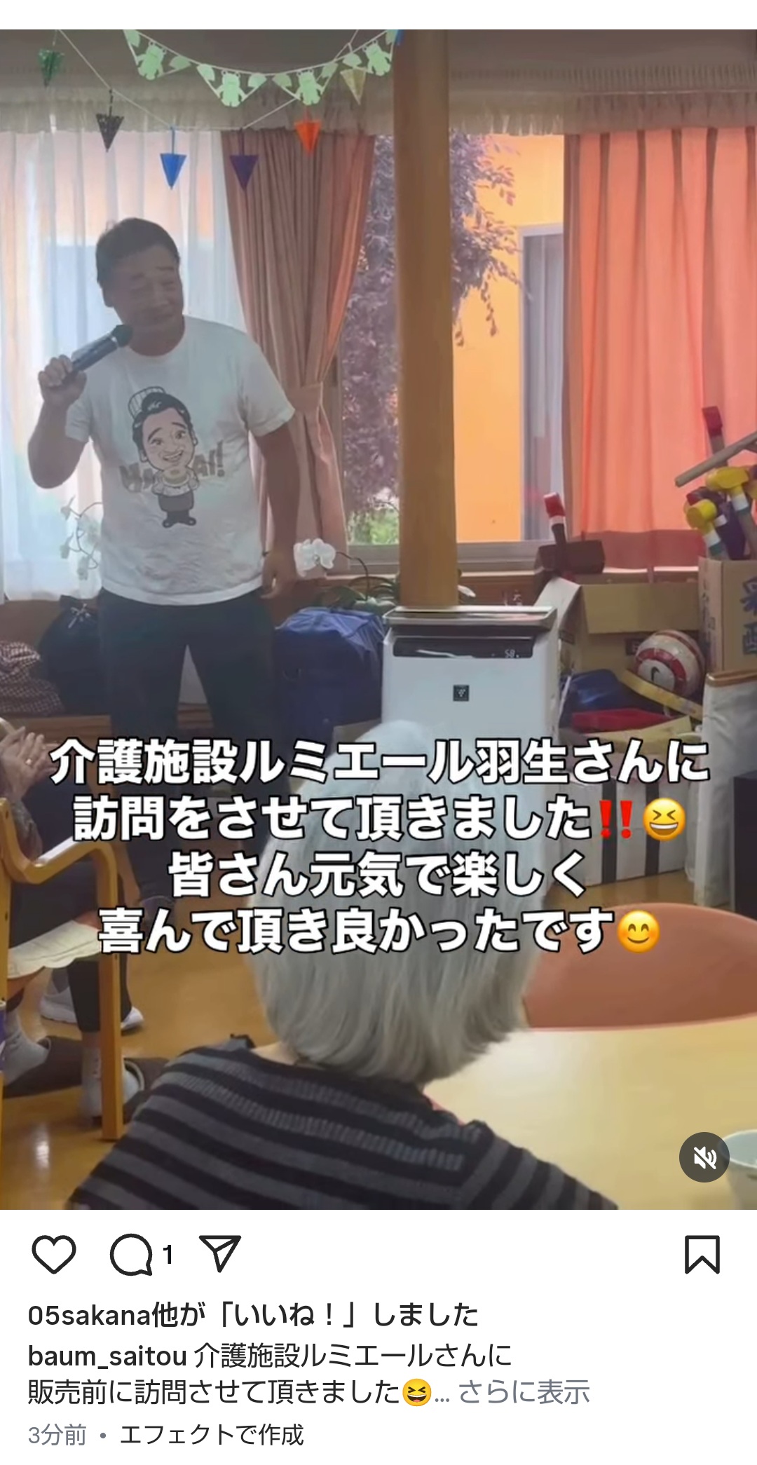 介護施設で歌を披露する斉藤慎二被告(本人のインスタグラム「バームSAITOU」から)