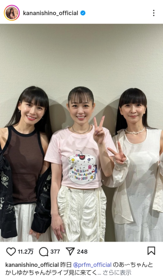 左から、あ~ちゃん、西野カナ、かしゆか(西野カナのインスタグラムから)