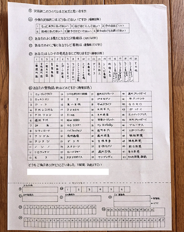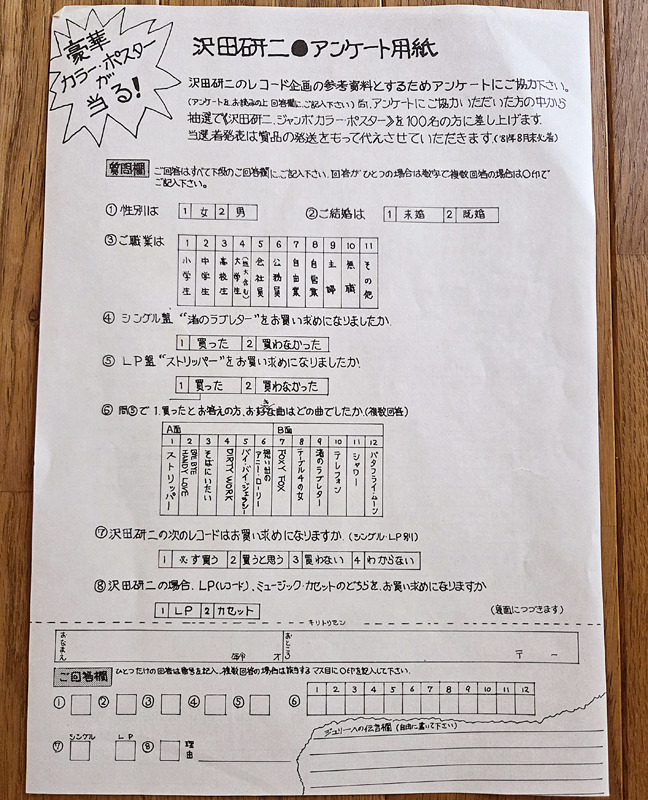 【ジュリー・ロックン・ツアー '81】の「来場者アンケート」に答えてみる