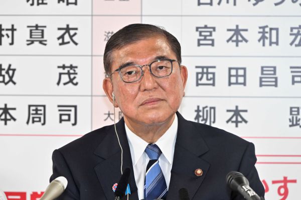 開票センターでしばし呆然とする石破茂首相(C)JMPA