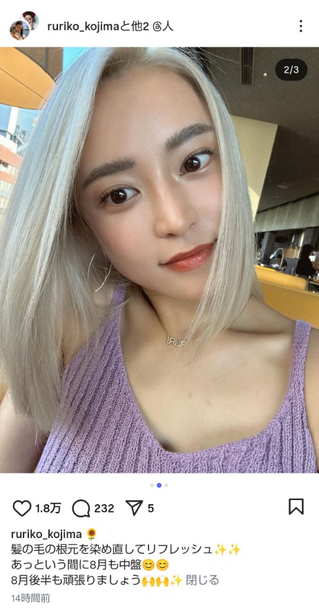 金髪姿がまぶしい小島瑠璃子(本人のインスタグラムから)
