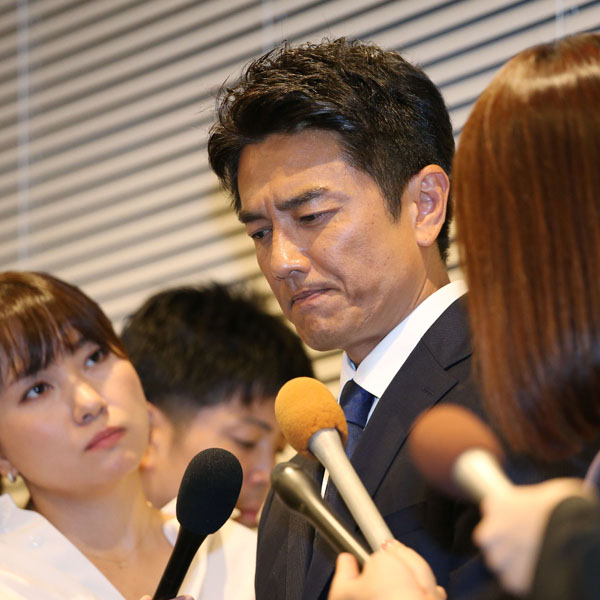 不倫騒動で会見を開き、謝罪をする原田龍二(C)日刊ゲンダイ