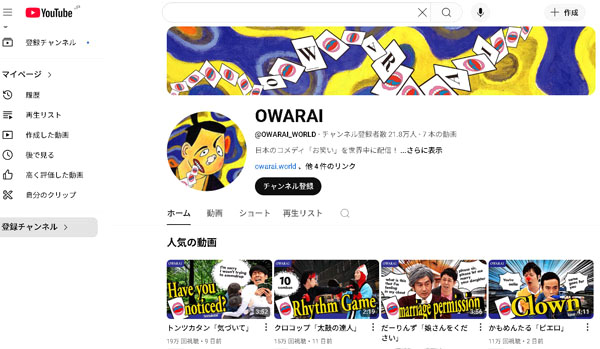 YouTubeチャンネル「OWARAI」スタート! 日本にお笑いを世界に…横尾忠則も賛同